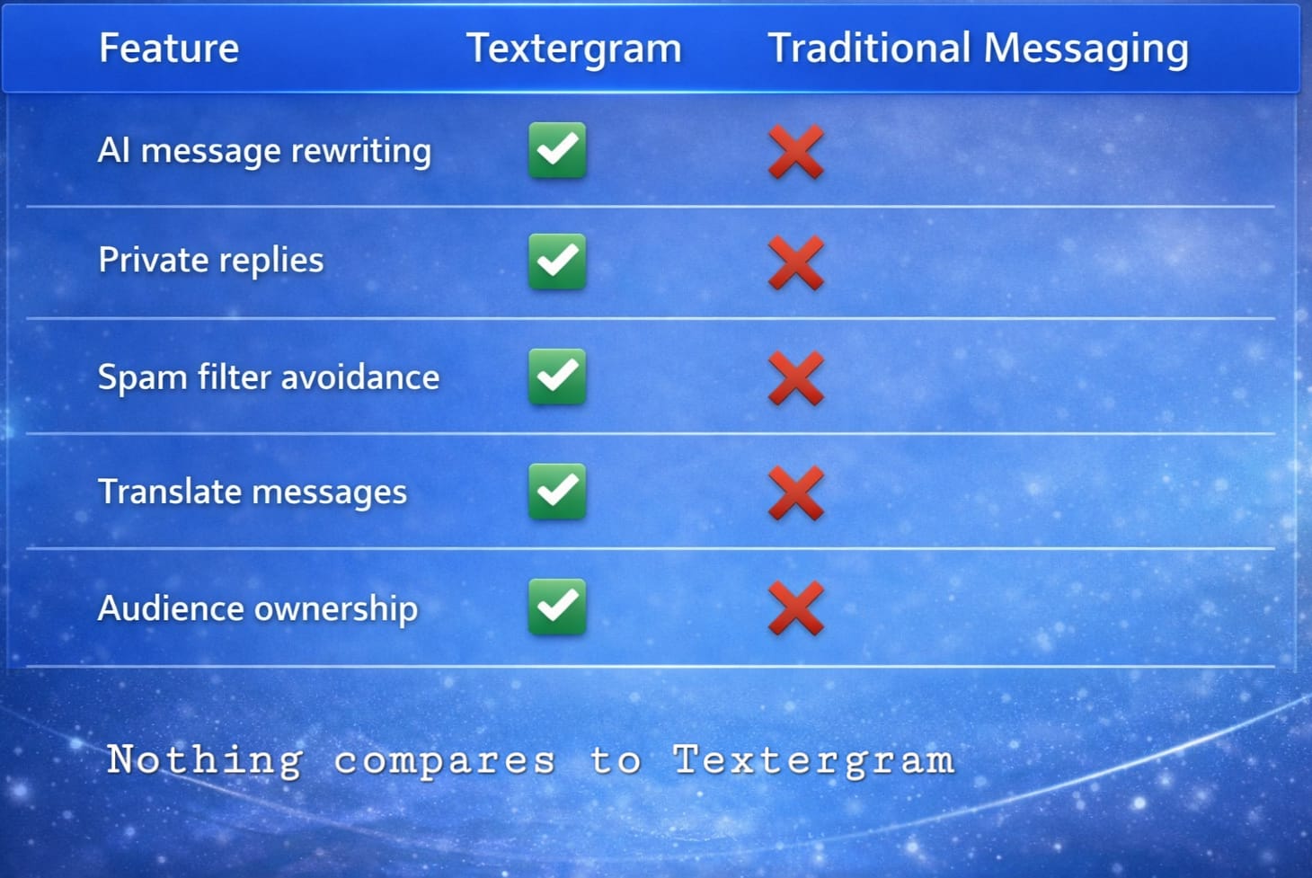 See how Textergram stands out from the competition.